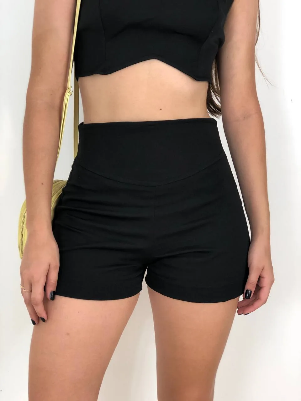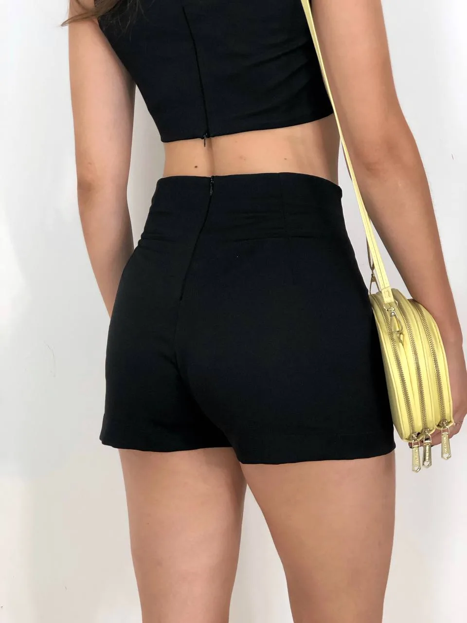 comprimento curto, fechamento zíper traseiro, modelagem justa, cós alto, contém toque suave, com conforto extremo;