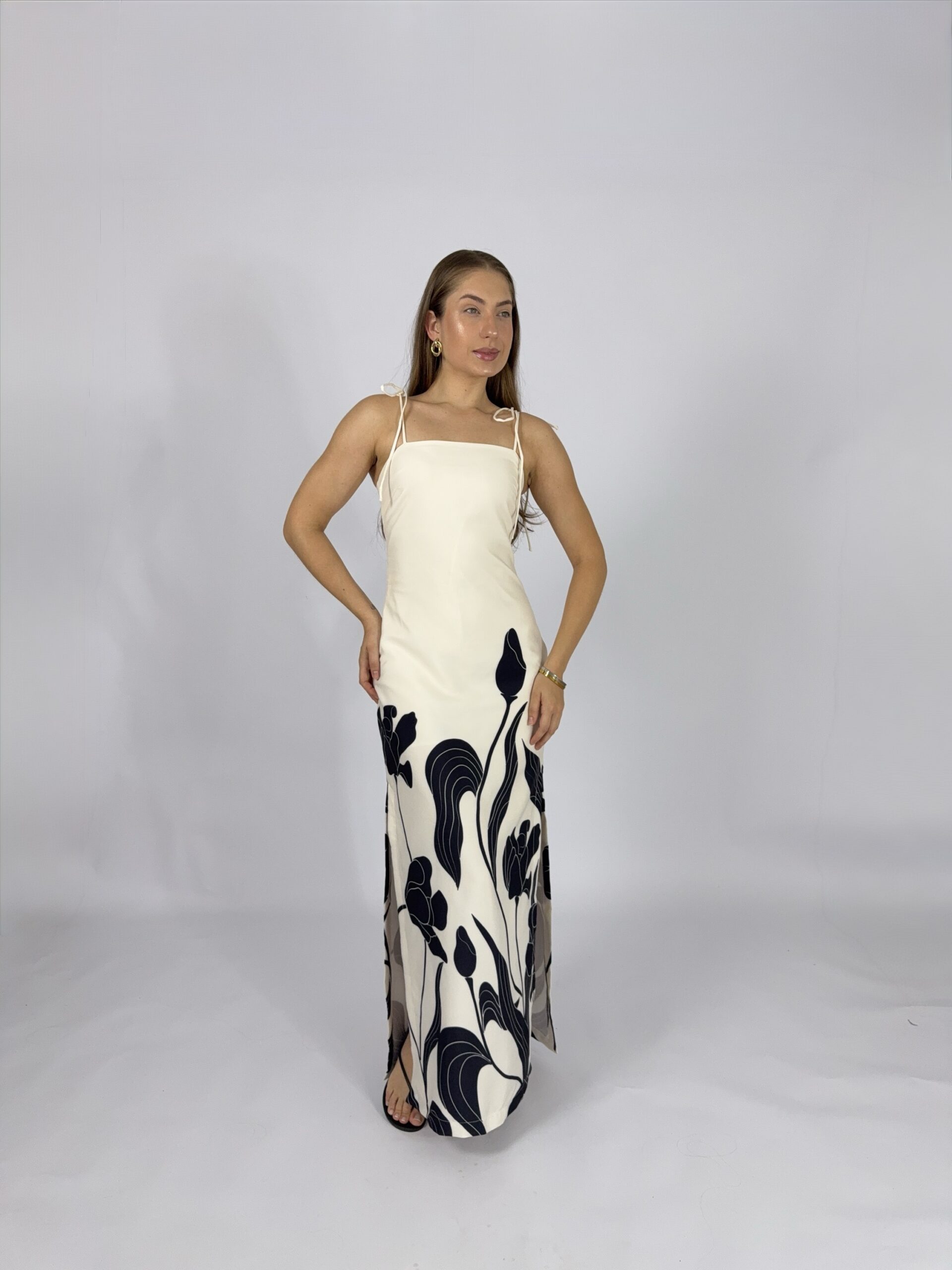 – Vestido com tecido duplo, com forro na parte interna até a fenda.
